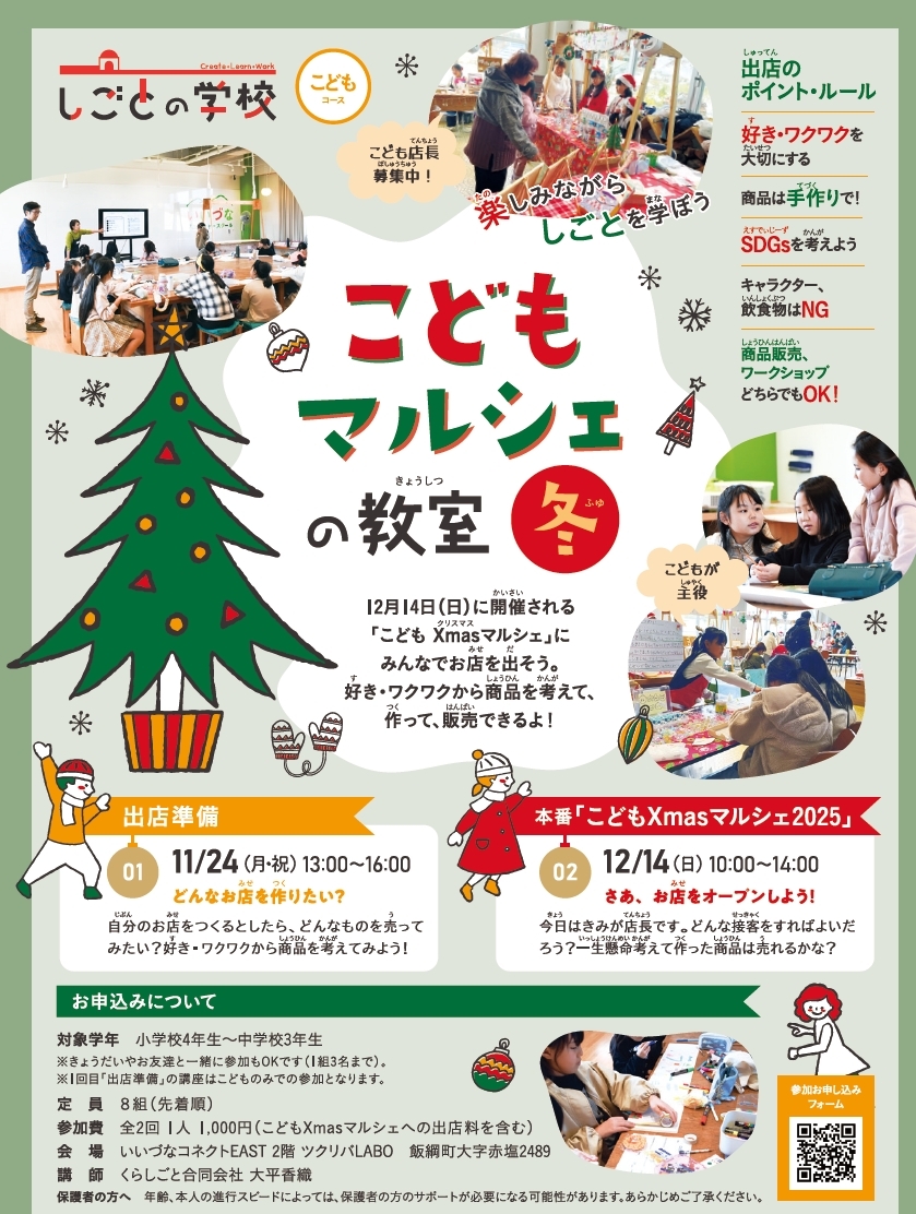 【2025年11月24日(月・祝)・12月14日(日)開催】楽しみながらしごとを学ぼう こどもマルシェの教室 冬