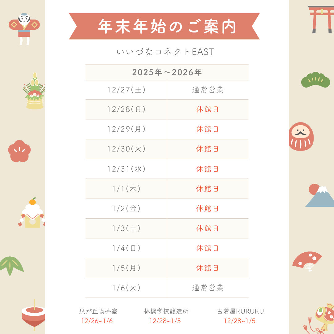 【お知らせ】「いいコネEAST」年末年始の営業について